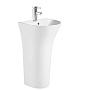 Раковина имеет классическую форму с плавными линиями, что позволяет ей гармонично вписаться в любой интерьер. Гладкая поверхность легко очищается от загрязнений, а устойчивое напольное основание обеспечивает стабильность и безопасность при использовании.