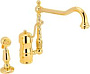 Смеситель для кухни Migliore Queen Nostalgia 18283 золото подходит для классических чаш с душем. Сантехника выдерживает интенсивную эксплуатацию, воздействие жесткой воды, оставаясь надежной и красивой. В цену 37300 рублей входит все, что нужно для установки смесителя.