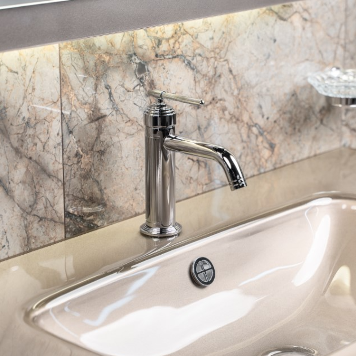 Смеситель для раковины Boheme Eterna 171-CR подходит для классических чаш с душем. Сантехника выдерживает интенсивную эксплуатацию, воздействие жесткой воды, оставаясь надежной и красивой. В цену 16350 рублей входит все, что нужно для установки смесителя.