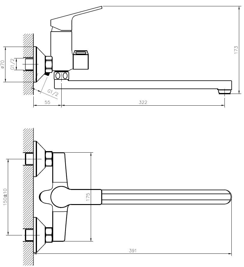 Благодаря настенному монтажу смеситель экономит пространство на раковине или ванне, делая уборку проще и быстрее. Управление осуществляется с помощью удобного рычажного механизма, который позволяет точно регулировать температуру и напор воды одним плавным движением. Керамический картридж обеспечивает плавность хода и долговечность работы даже при частом использовании.