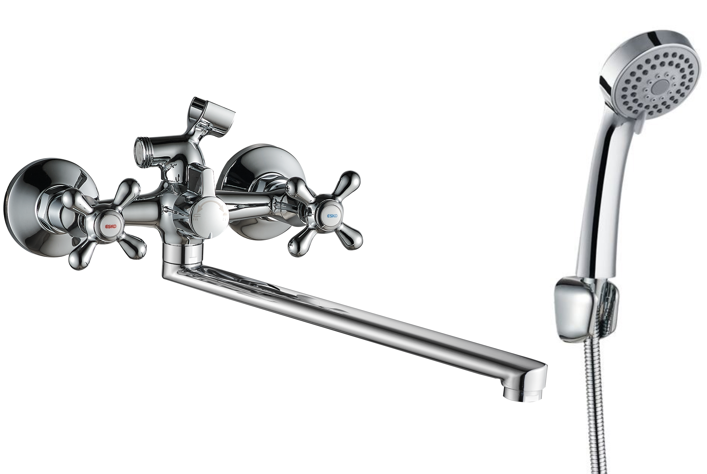 Смеситель для ванны Esko Vienna VN 31-2 подходит для классических чаш с душем. Сантехника выдерживает интенсивную эксплуатацию, воздействие жесткой воды, оставаясь надежной и красивой. В цену 9190 рублей входит все, что нужно для установки смесителя.