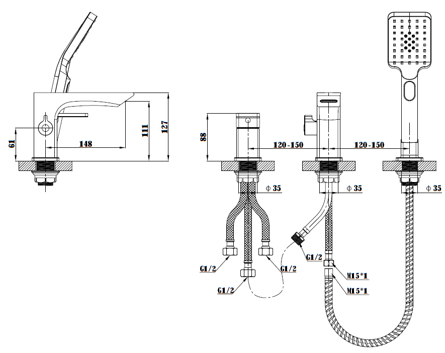 В комплекте с смесителем идет душевой гарнитур, что делает его универсальным решением для тех, кто ценит комфорт и функциональность. Вы сможете легко переключаться между наполнением ванны и принятием душа, не устанавливая дополнительное оборудование.