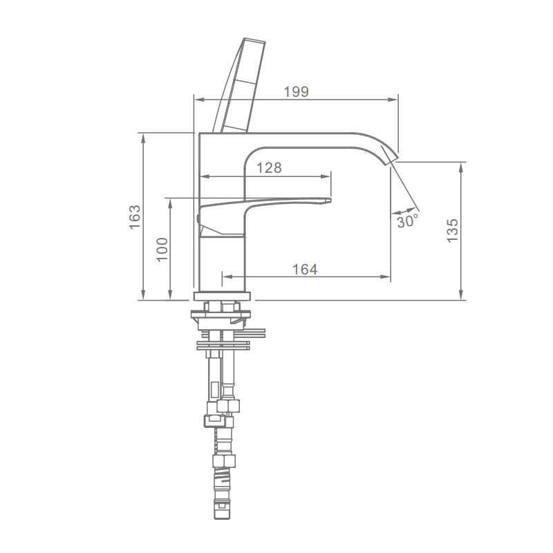 Основой смесителя служит высококачественная латунь — материал, известный своей долговечностью и устойчивостью к коррозии. Матовое покрытие цвета «оружейная сталь» не только выглядит престижно, но и скрывает отпечатки пальцев и мелкие капли воды, сохраняя эстетику на долгое время. Управление происходит с помощью удобного рычажного механизма, который обеспечивает плавную регулировку температуры и напора воды.
