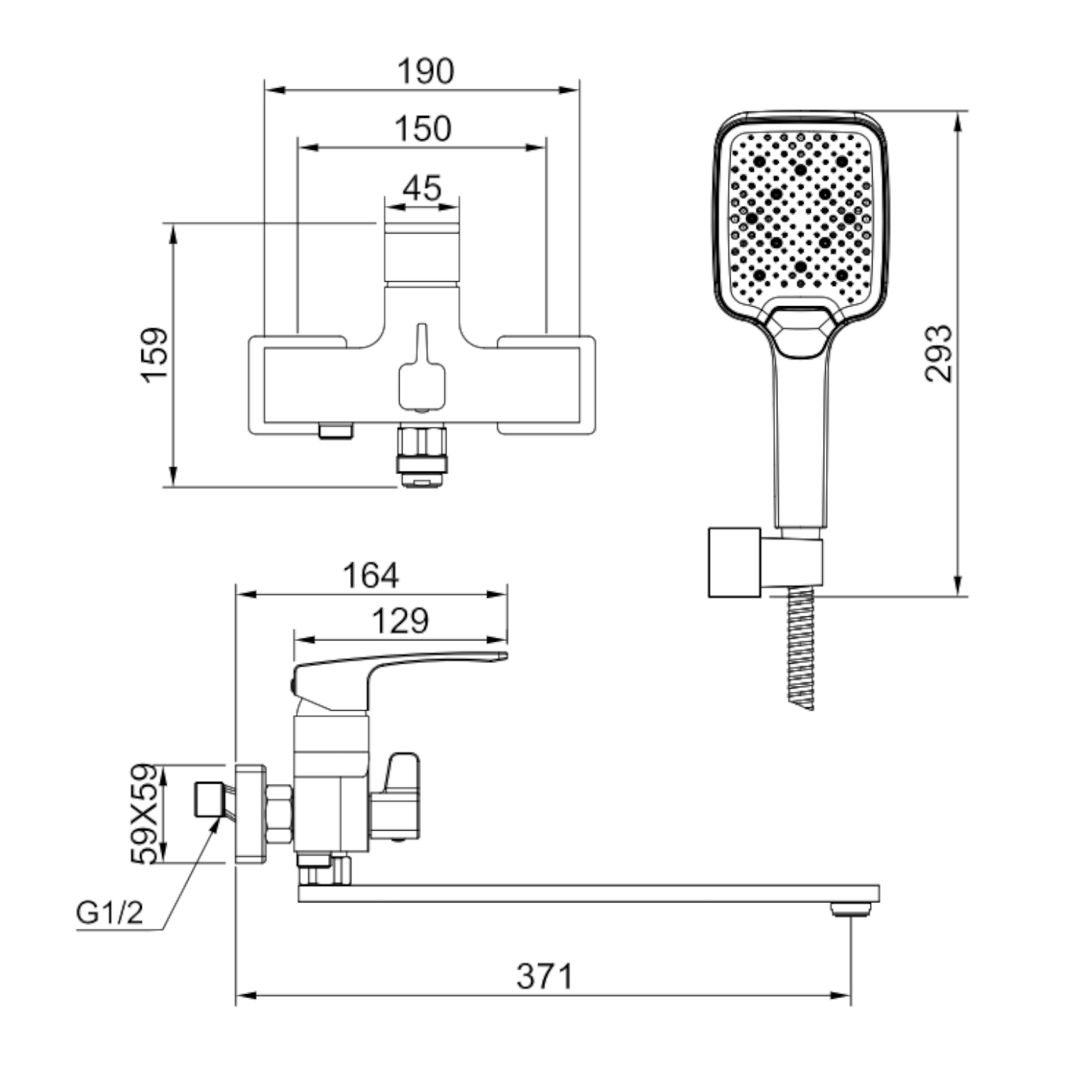 Комплектация включает душевой гарнитур с шлангом длиной 150 см, что удобно для семей с детьми или для ухода за животными. Жёсткая подводка с двумя отверстиями для монтажа обеспечивает простую и надёжную установку. Стандартное подключение 1/2" позволяет использовать смеситель с большинством систем водоснабжения без дополнительных адаптеров.