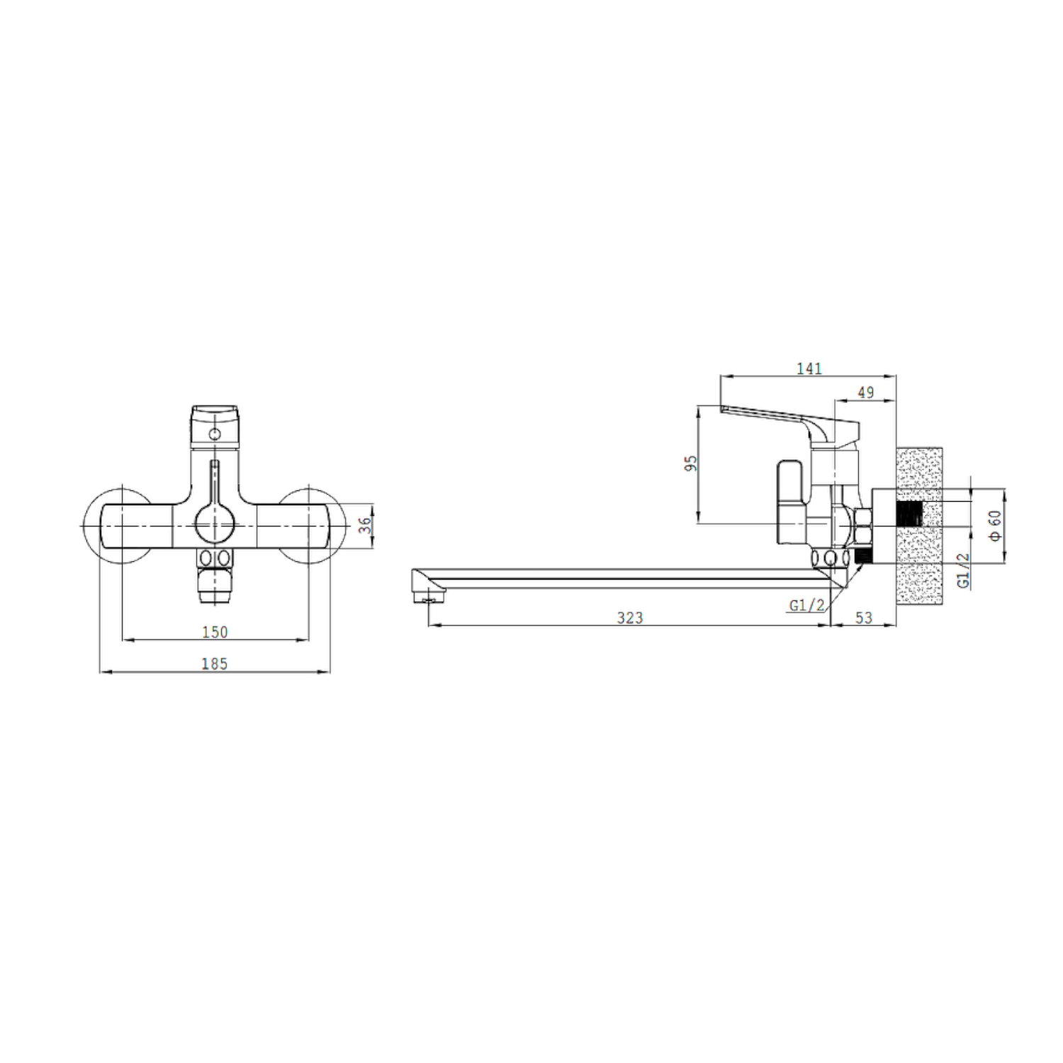 Смеситель Splenka S30.22 устанавливается на стену и требует всего 2 отверстия для монтажа. Стандартная подводка 1/2" делает его совместимым с большинством систем водоснабжения. Рычажное управление интуитивно понятно и удобно в использовании, даже для детей и пожилых людей.