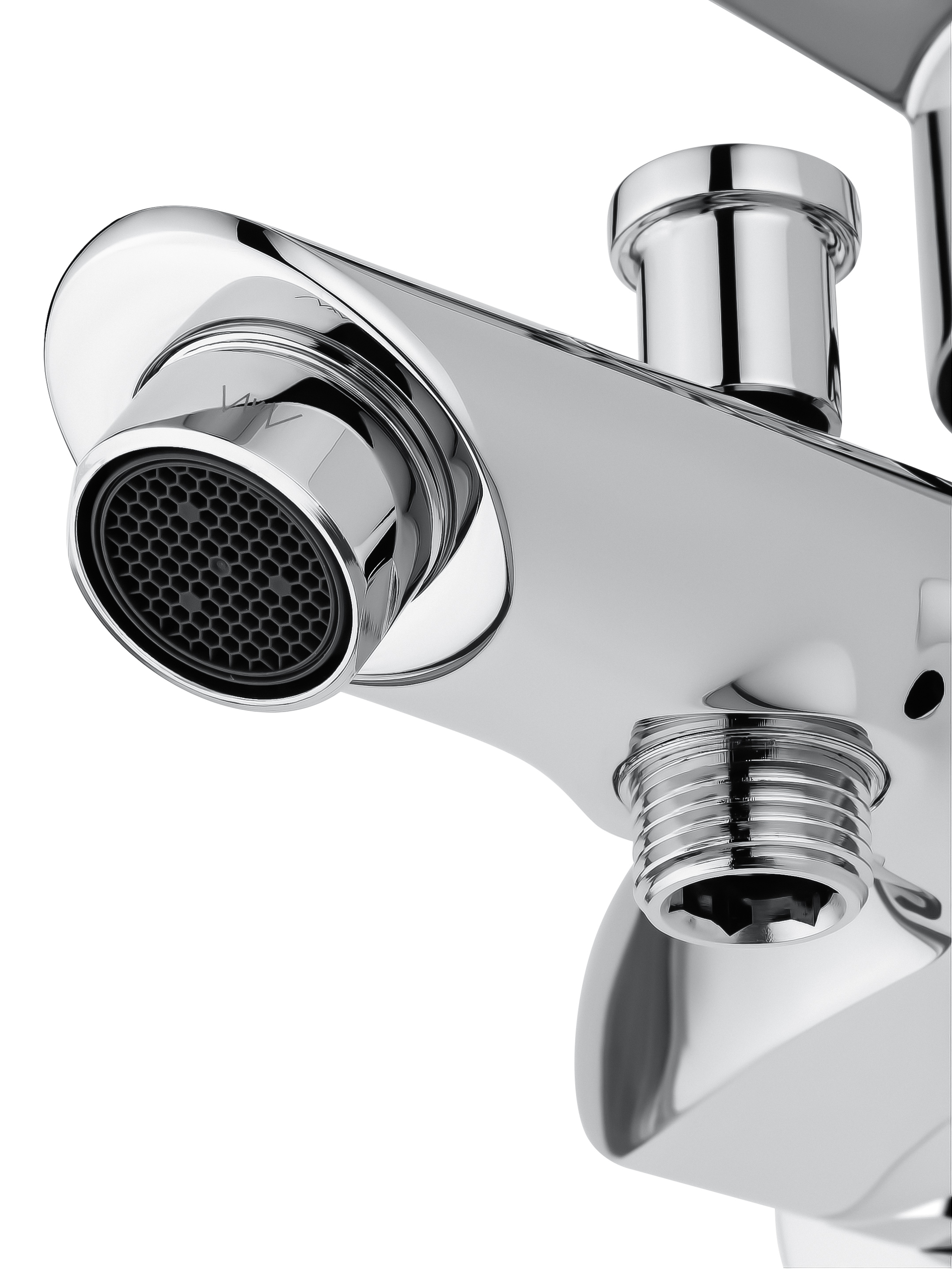 Изготовленный из высококачественной латуни, этот настенный смеситель обеспечивает не только прочность, но и устойчивость к коррозии. Хромированное покрытие придает поверхности глянцевый блеск, который легко поддерживать в чистоте и который надолго сохранит привлекательный вид. Компактные габариты — 18 × 18 × 9 см — позволяют устанавливать смеситель даже в ванных комнатах с ограниченным пространством, не перегружая интерьер.