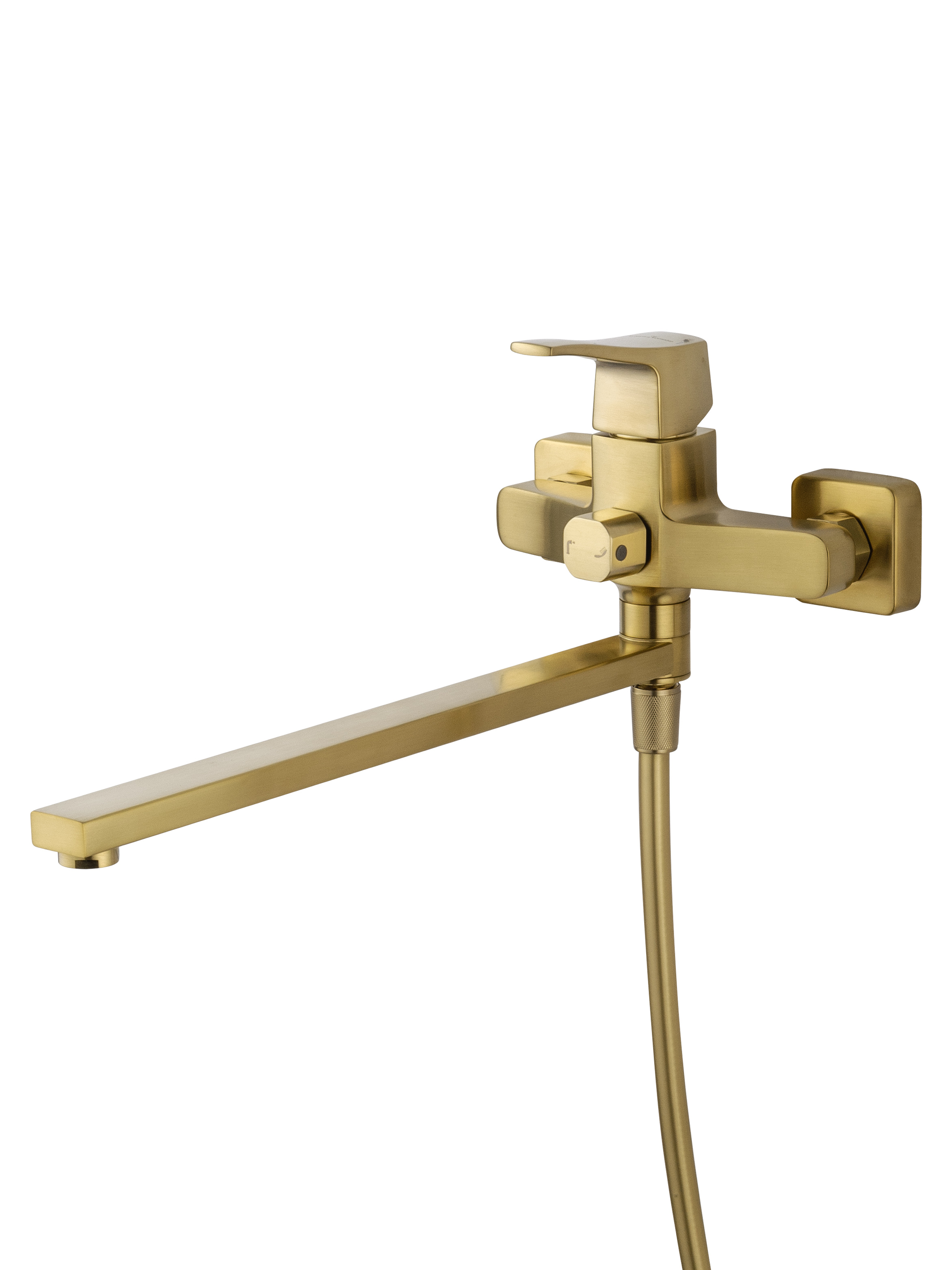 Смеситель для ванны Wonzon & Woghand Flex WW-639906-BG подходит для классических чаш с душем. Сантехника выдерживает интенсивную эксплуатацию, воздействие жесткой воды, оставаясь надежной и красивой. В цену 30345 рублей входит все, что нужно для установки смесителя.