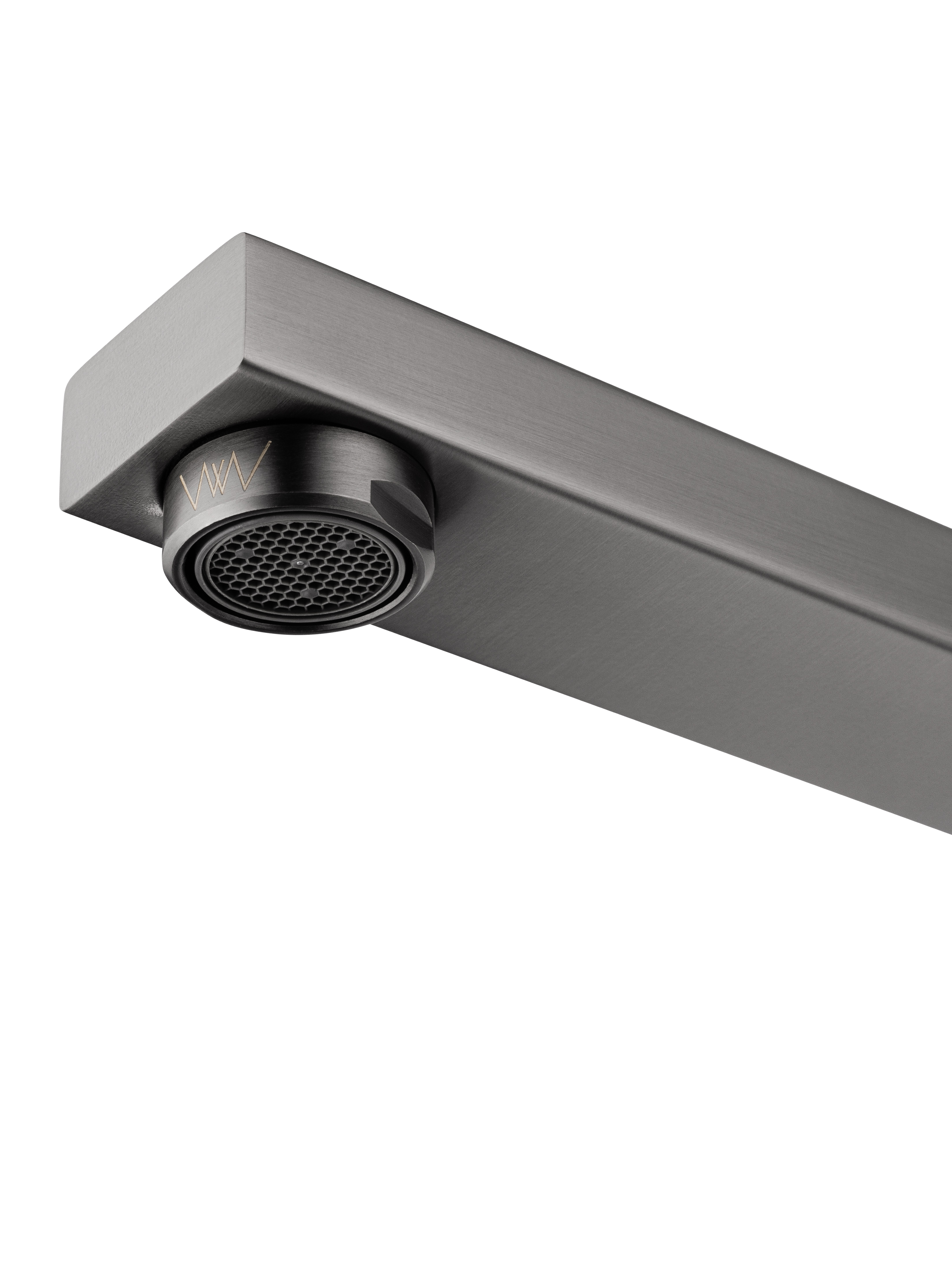Выполненный из высококачественной латуни, этот смеситель отличается невероятной прочностью и долговечностью. Брашированное покрытие цвета оружейной стали придаёт изделию особый шарм и изысканность, а также защищает от повседневных загрязнений и царапин. Высота излива составляет 10 см, что обеспечивает удобство использования и идеальный напор воды.