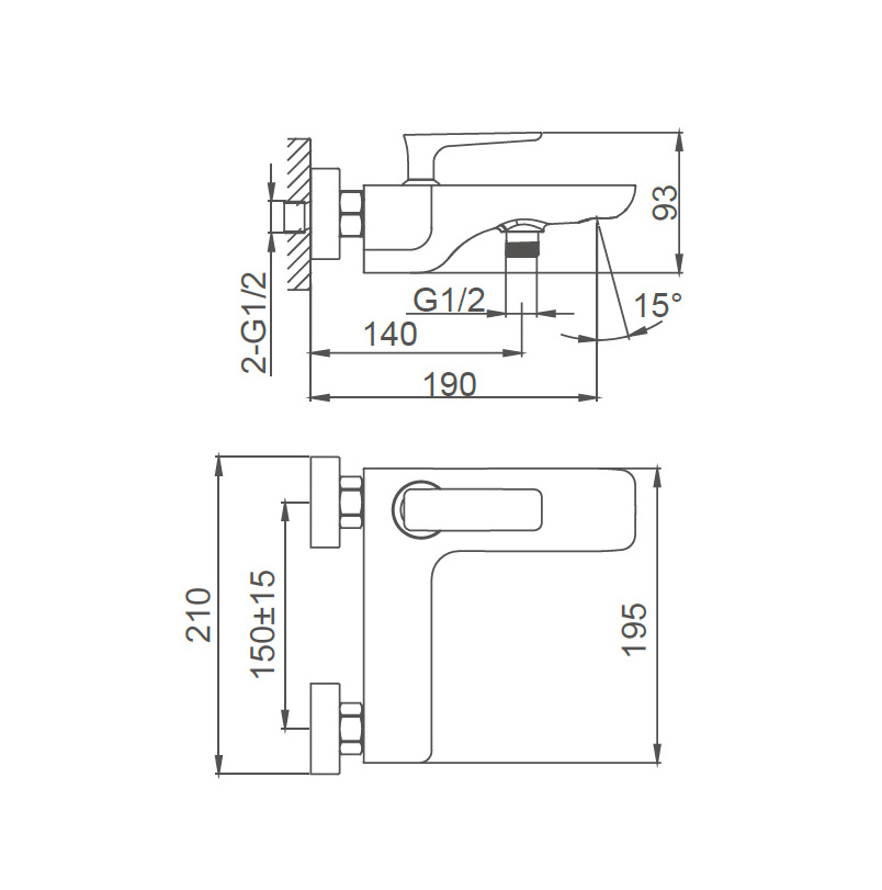 Благодаря монтажу на стену, смеситель визуально освобождает пространство у раковины и ванны, придавая интерьеру аккуратный и лаконичный вид. Округлая форма и глянцевая хромированная поверхность не только выглядят элегантно, но и легко вписываются в любой современный дизайн. Высота излива 19 см позволяет комфортно наполнять ванну, не создавая брызг, а расположение рычага сверху обеспечивает удобное управление одной рукой.