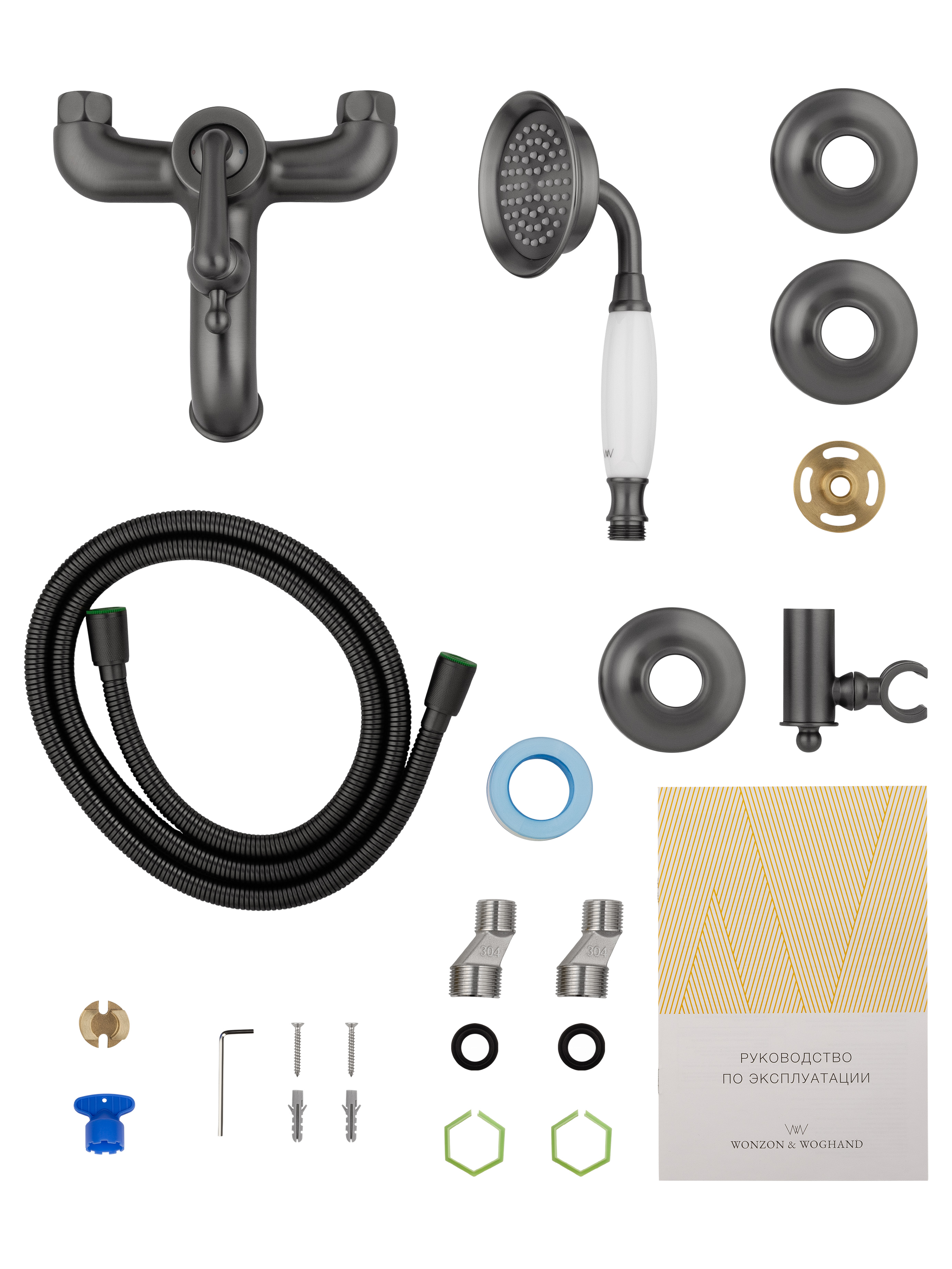 Смеситель для ванны Wonzon & Woghand Steam WW-88639008-BGM подходит для классических чаш с душем. Сантехника выдерживает интенсивную эксплуатацию, воздействие жесткой воды, оставаясь надежной и красивой. В цену 45994 рублей входит все, что нужно для установки смесителя.