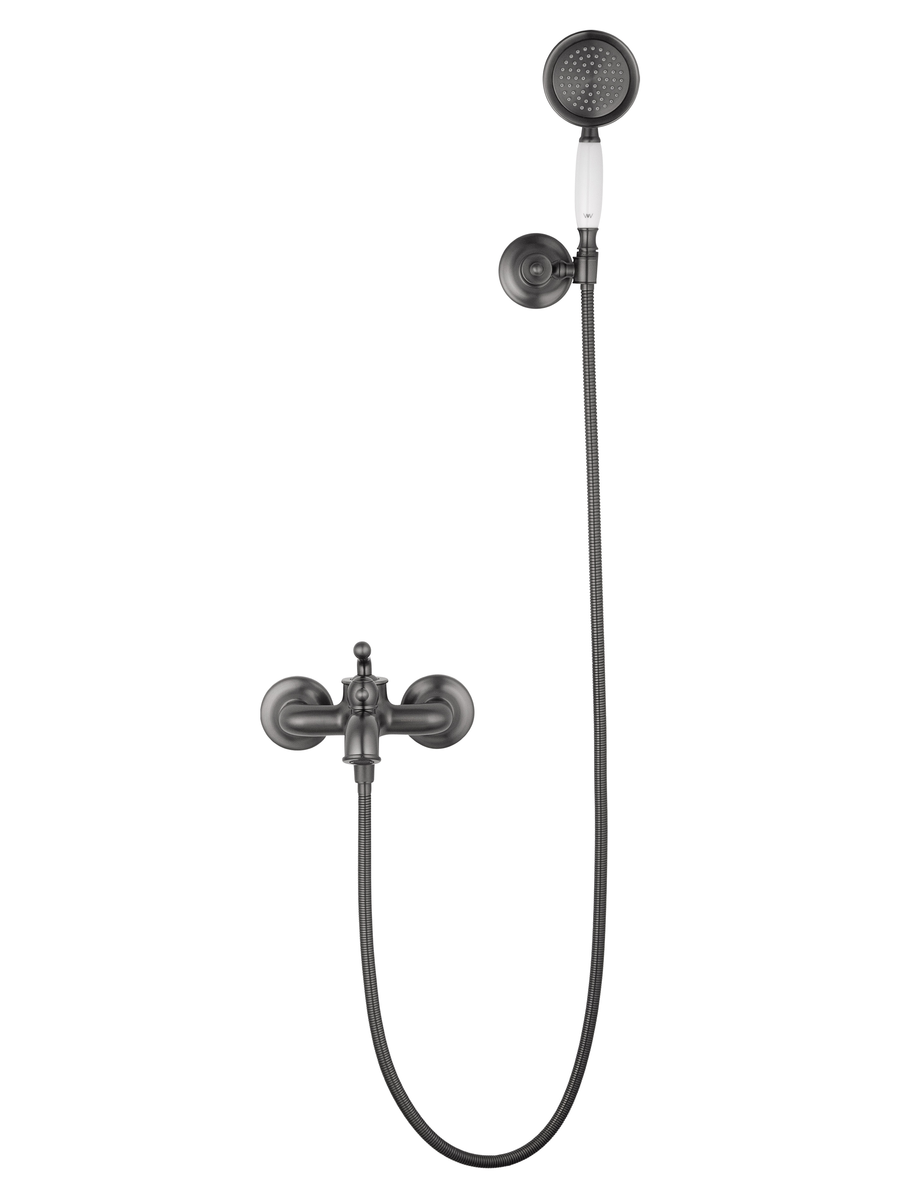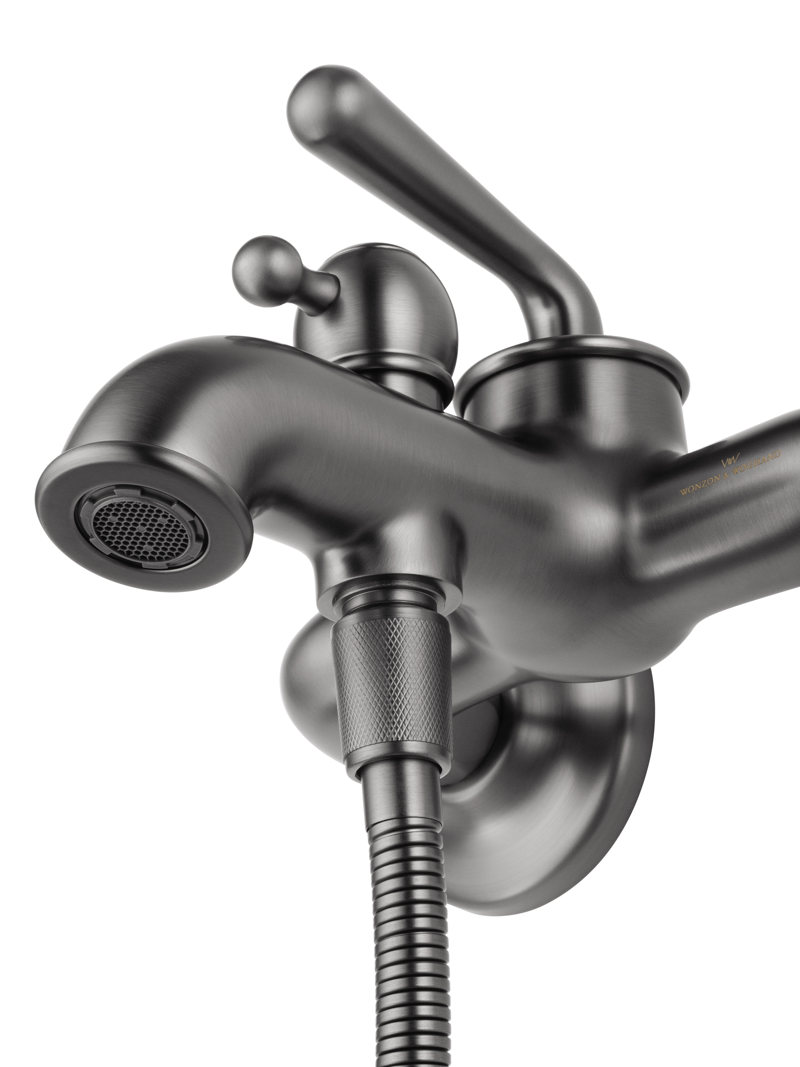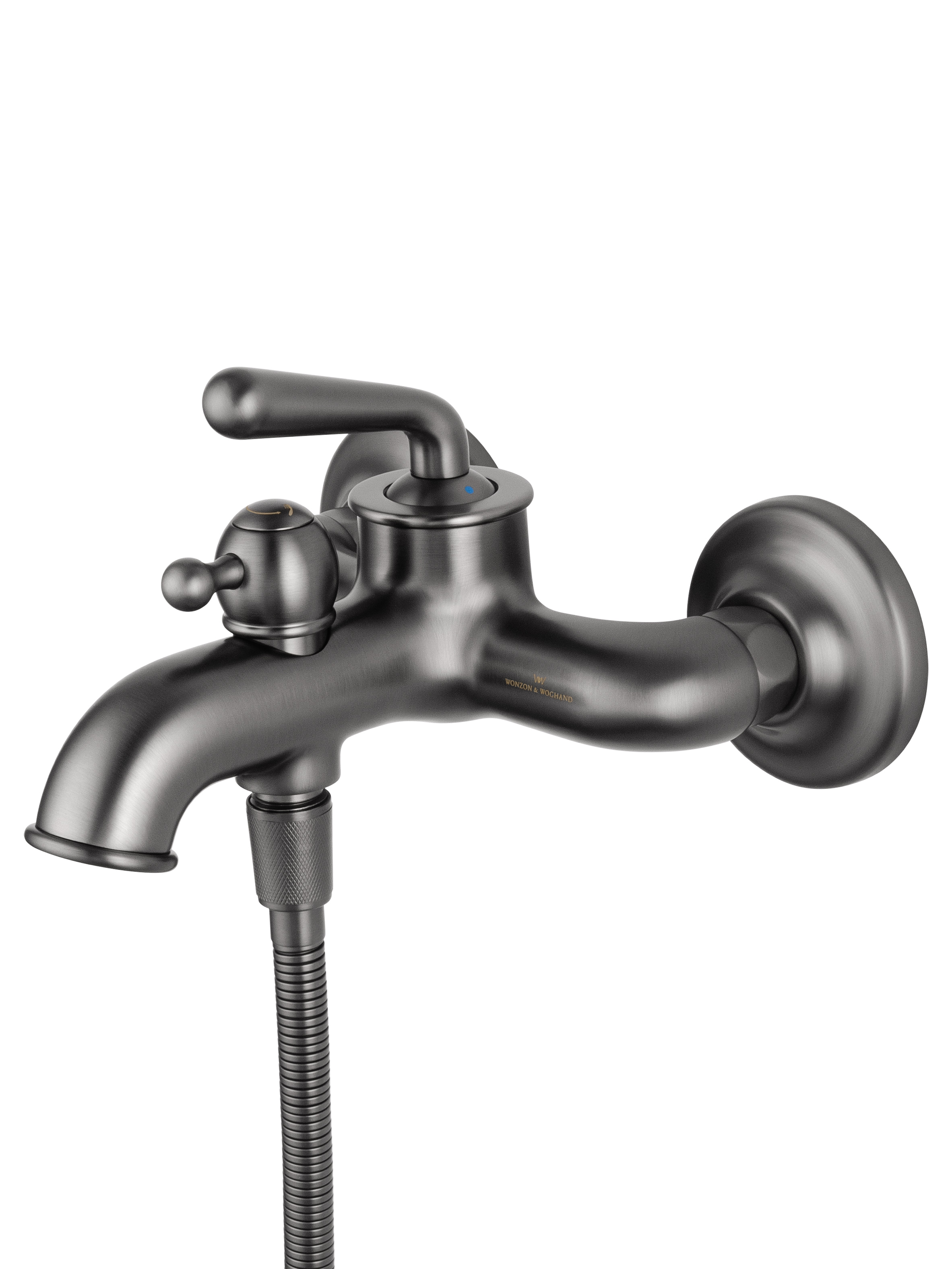 Смеситель выполнен из высококачественной латуни, что гарантирует не только долговечность, но и устойчивость к коррозии. Брашированное покрытие цвета оружейной стали придает изделию элегантный вид и защищает от царапин и потертостей. Округлая форма и современная стилистика органично впишутся в любой интерьер ванной комнаты, от минимализма до лофт-дизайна.