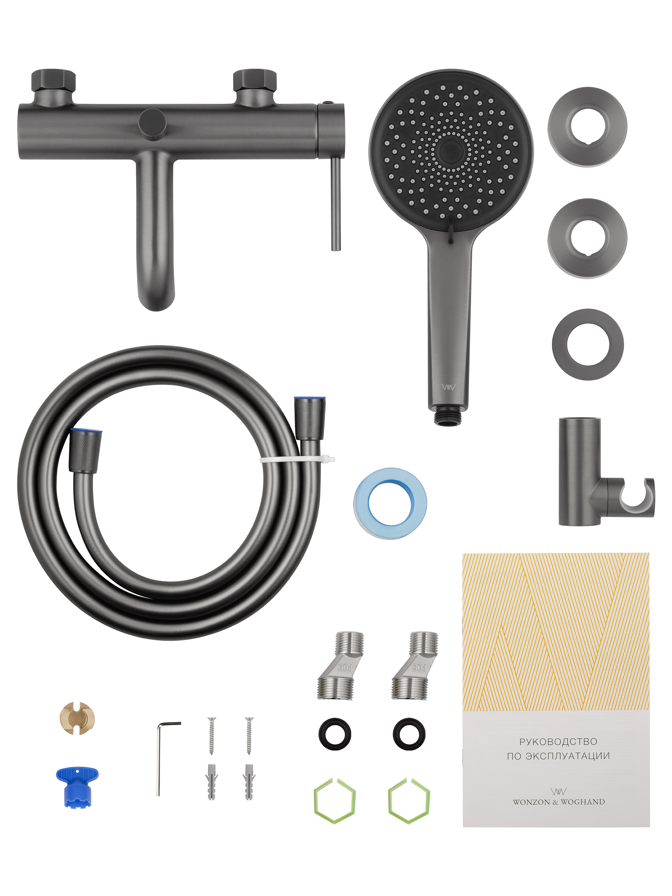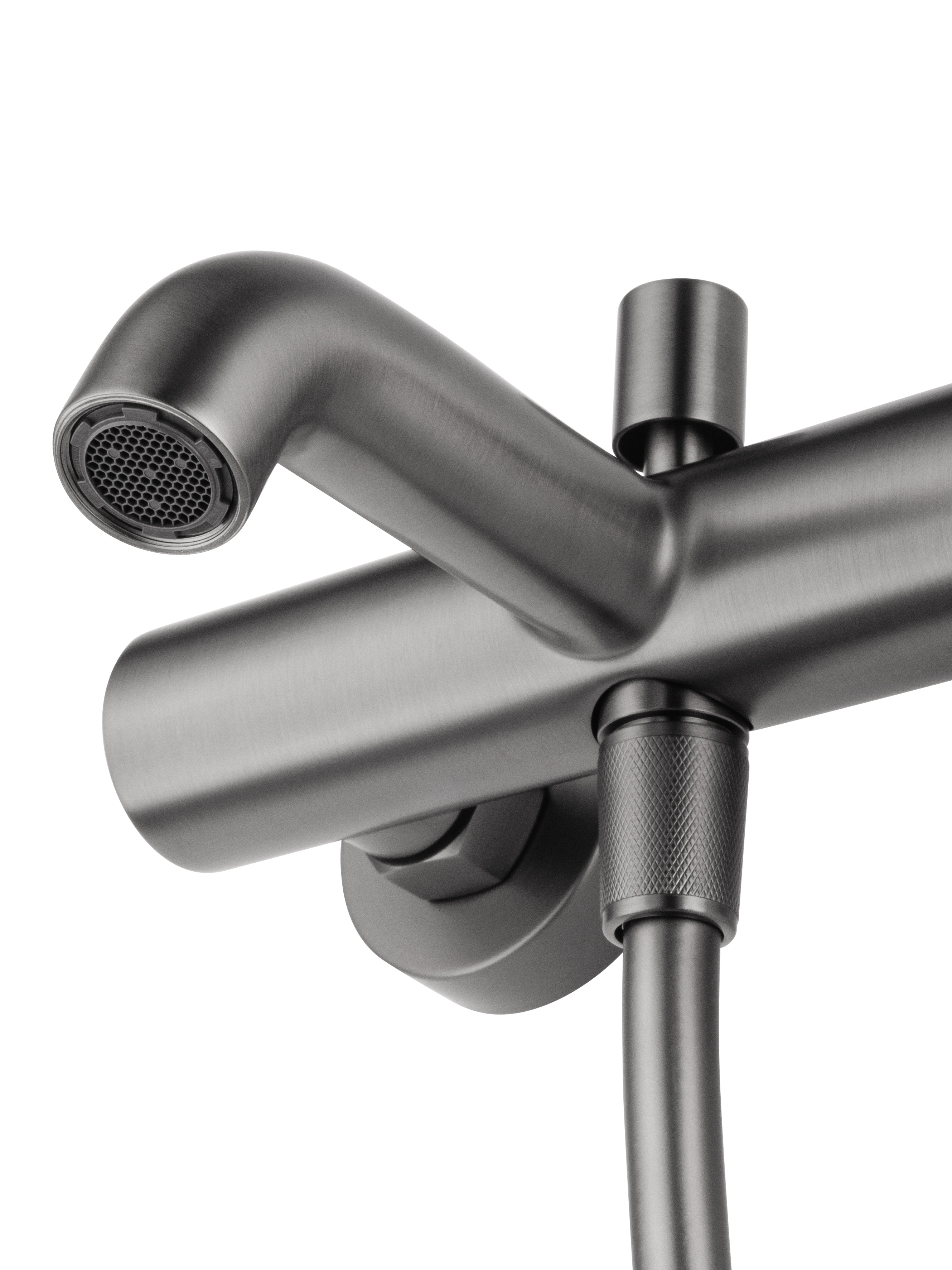 Почувствуйте разницу уже в первый момент использования: плавный ход рычага, точная регулировка температуры и напора воды, а также уверенное крепление на стену — все это создает ощущение премиум-класса. Матовая поверхность цвета "оружейная сталь" не только выглядит стильно, но и устойчива к отпечаткам пальцев и царапинам, сохраняя идеальный вид на долгие годы.