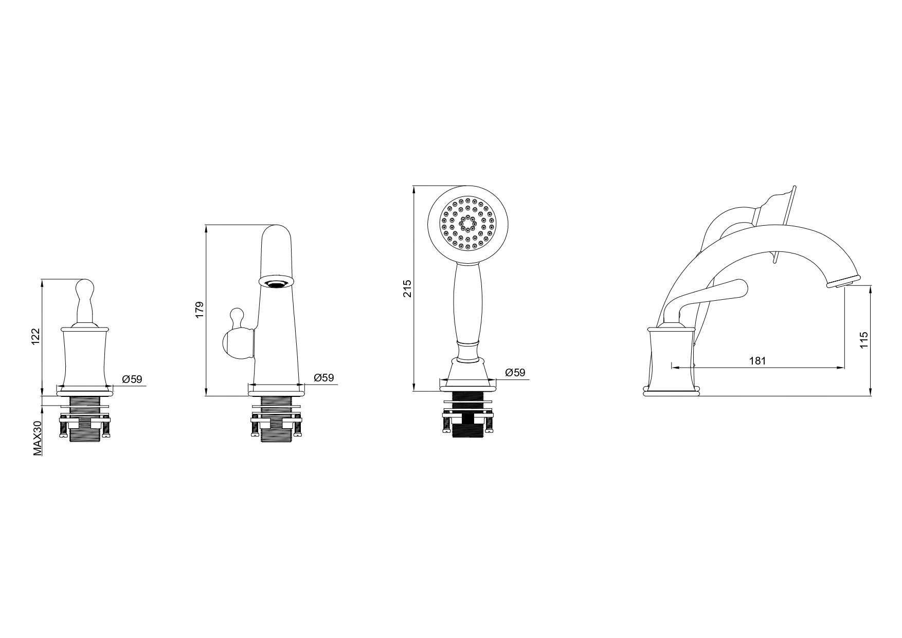 Очень малоСмеситель на борт ванны Wonzon & Woghand Steam WW-88659008-MB — немецкое качество в каждом элементе