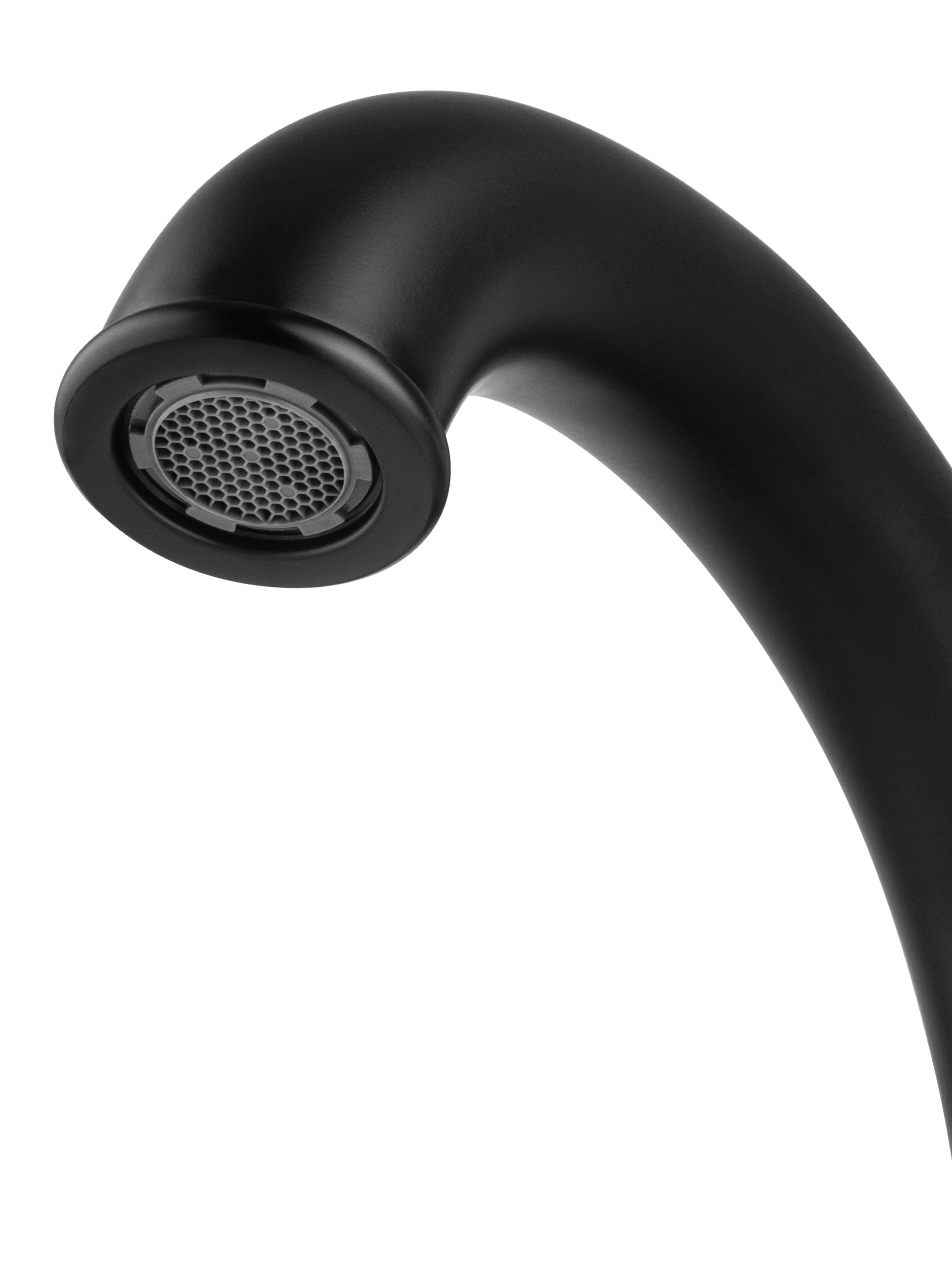 Стильная черная матовая поверхность не только выглядит роскошно, но и легко сочетается с различными материалами и цветовыми решениями в ванной комнате. Будь то мрамор, керамическая плитка или дерево — этот смеситель станет идеальным дополнением к вашему интерьеру.