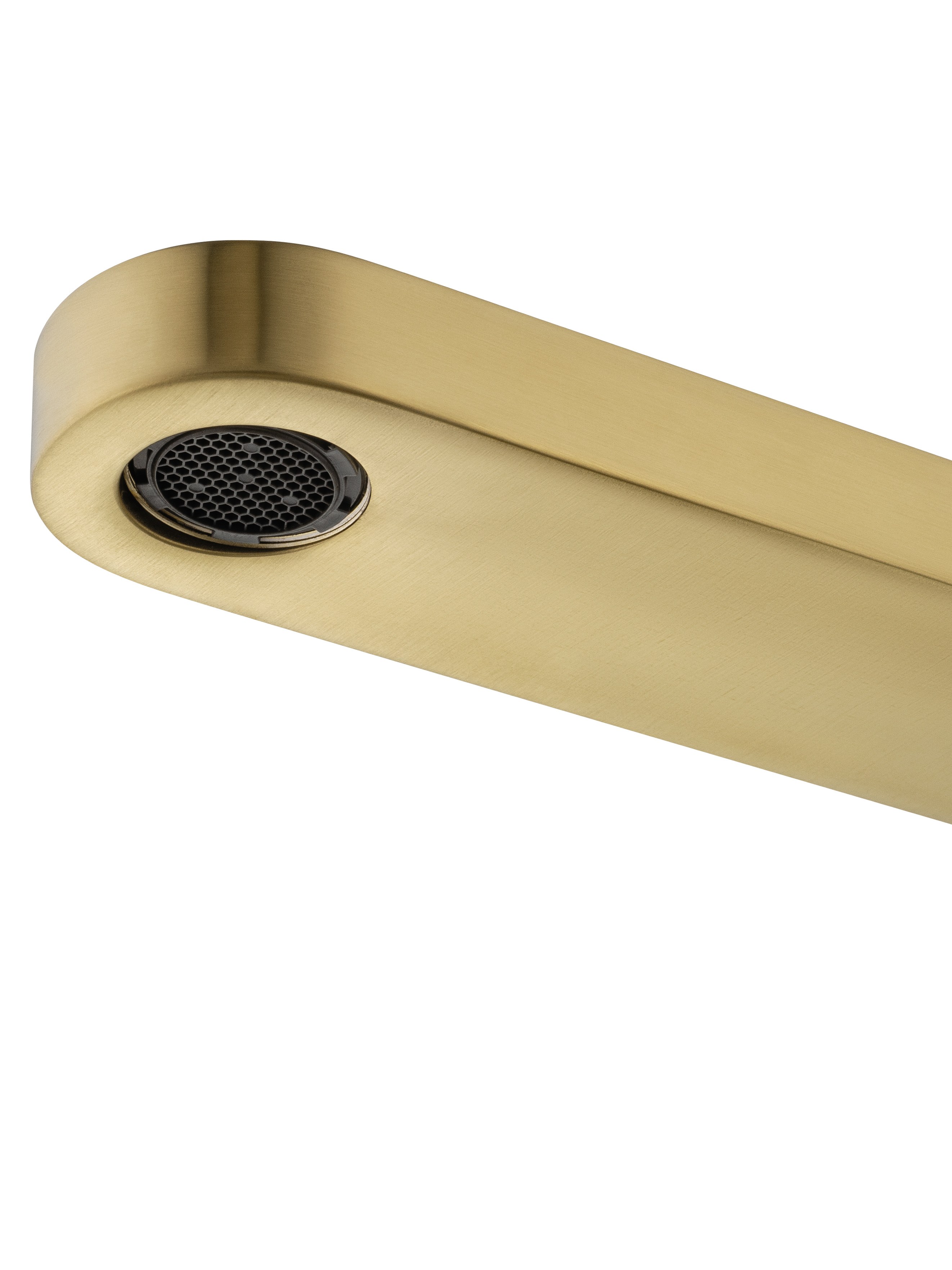 Высота модели составляет 87 см, а излив вынесен на впечатляющие 85,5 см, что идеально подходит для отдельностоящих ванн. Благодаря напольной установке, смеситель визуально «растёт» из пола, создавая ощущение простора и лёгкости. Округлая форма и брашированное золотистое покрытие придают изделию теплоту и шарм, а при этом сохраняют современный, лаконичный стиль.