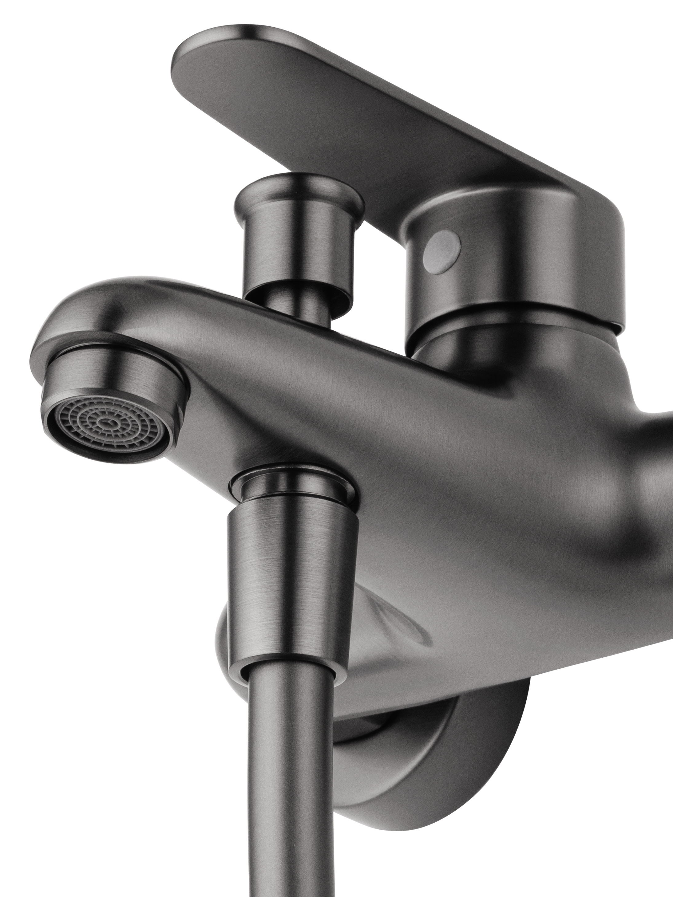 Смеситель выполнен в стильном цвете оружейная сталь с брашированной поверхностью, что придает ему благородный матовый оттенок и устойчивость к отпечаткам пальцев и водным пятнам. Округлая форма и лаконичные линии органично впишутся в любой современный интерьер ванной комнаты, добавив нотку утонченности.