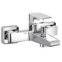Управление смесителем осуществляется с помощью удобного рычажного механизма, который позволяет точно регулировать температуру и напор воды. Керамический картридж обеспечивает плавность хода и долговечность работы, исключая протечки и износ. Излив фиксированной формы идеально подходит для наполнения ванны, а комплектная ручка-душ делает процедуру купания еще более комфортной и практичной.