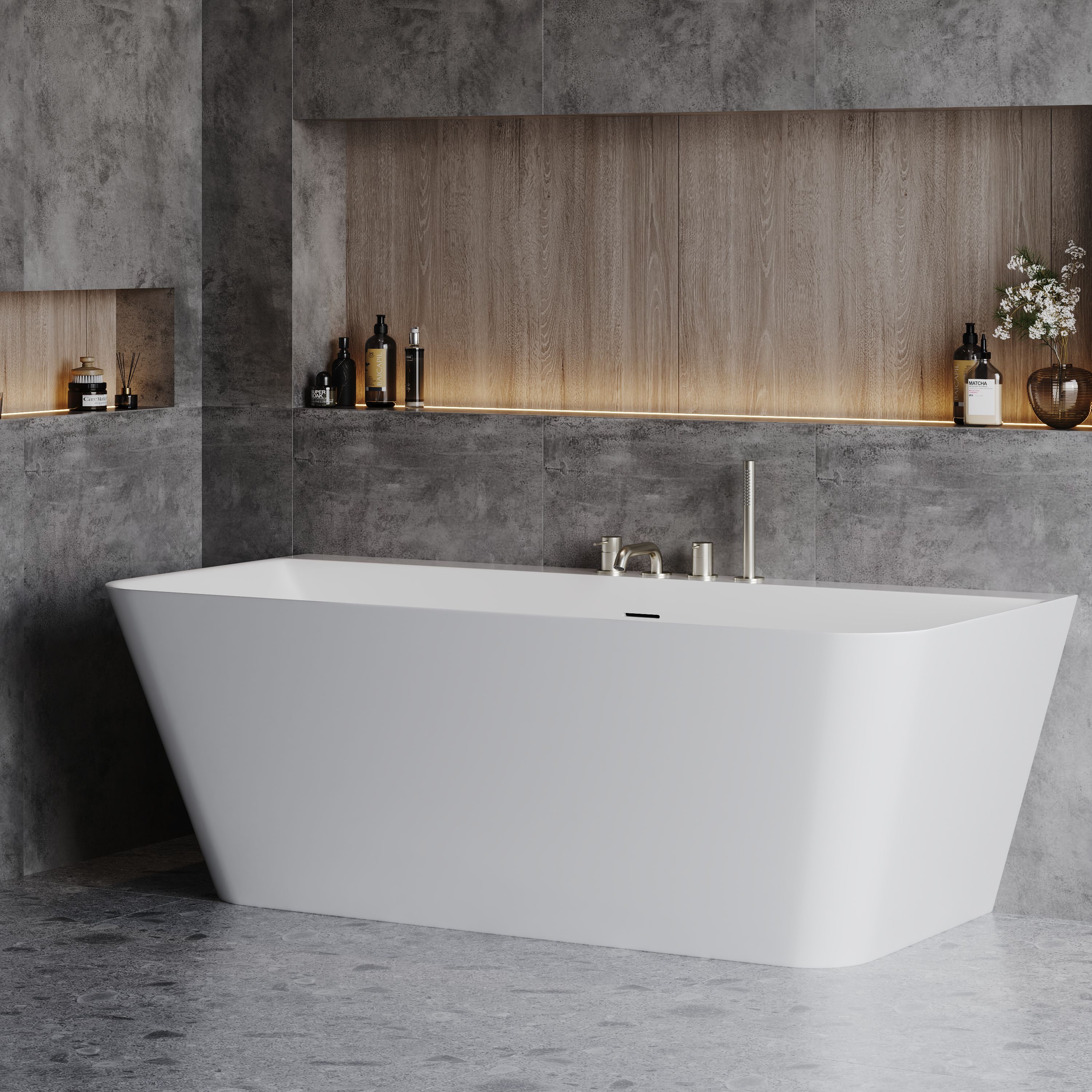 Благодаря керамическому картриджу управление смесителем становится плавным и точным — вы легко настраиваете температуру и напор воды. Вращение излива отсутствует, но это не недостаток: конструкция предусматривает оптимальную высоту излива 2,4 см, что обеспечивает комфортное наполнение ванны без брызг.