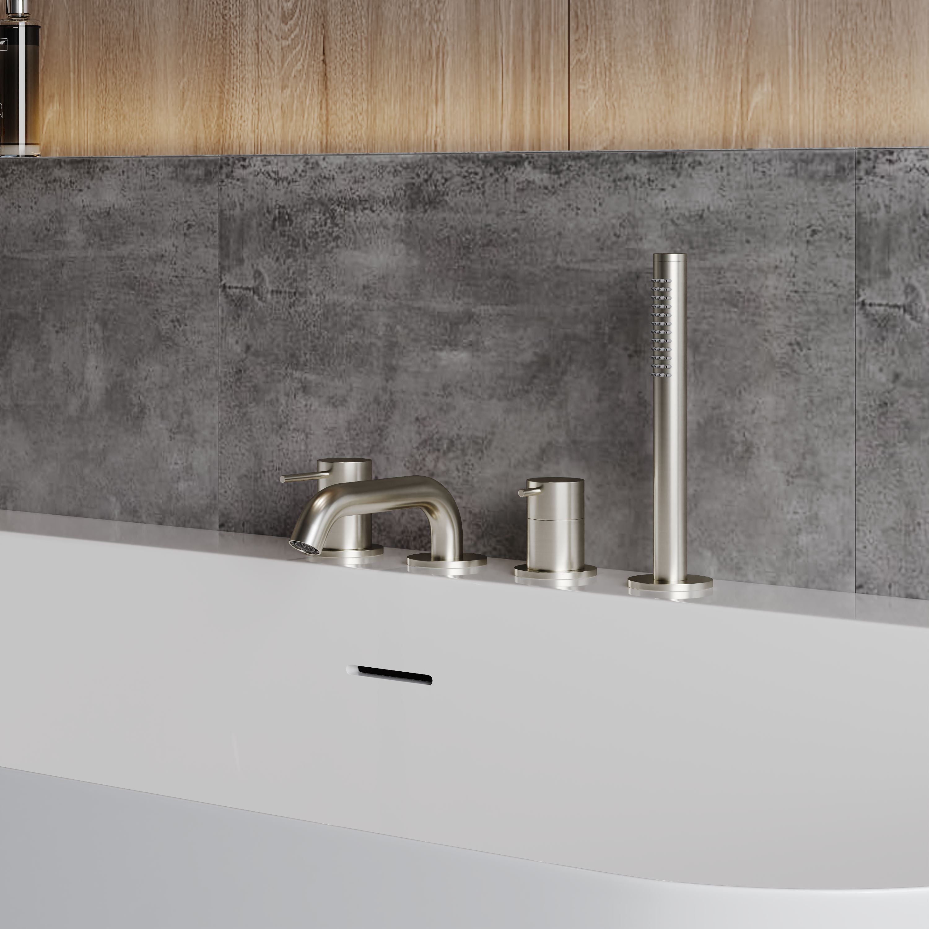 Смеситель рассчитан на четыре отверстия для монтажа и устанавливается непосредственно на борт ванны. Это делает его идеальным выбором для встроенных систем и скрытой подводки. В комплекте идет гибкая подводка 1/2" длиной 150 см, а также защита от обратного потока, что гарантирует безопасность и надежность.