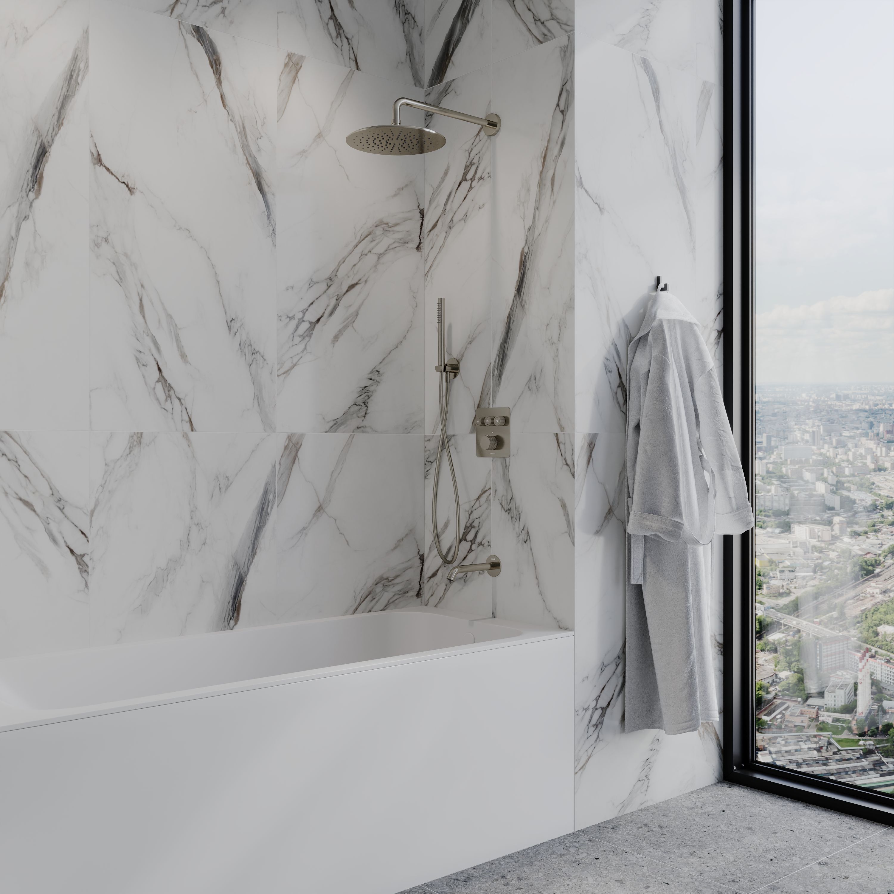 Термостатическое управление для трёх потребителей — AQUAme AQM8812BN поддерживает одновременное подключение до трёх точек водоразбора, что идеально подходит для ванн с душем. Вы сможете легко переключаться между наполнением ванны, душем и дополнительными функциями, не теряя комфорта и стабильности температуры.
