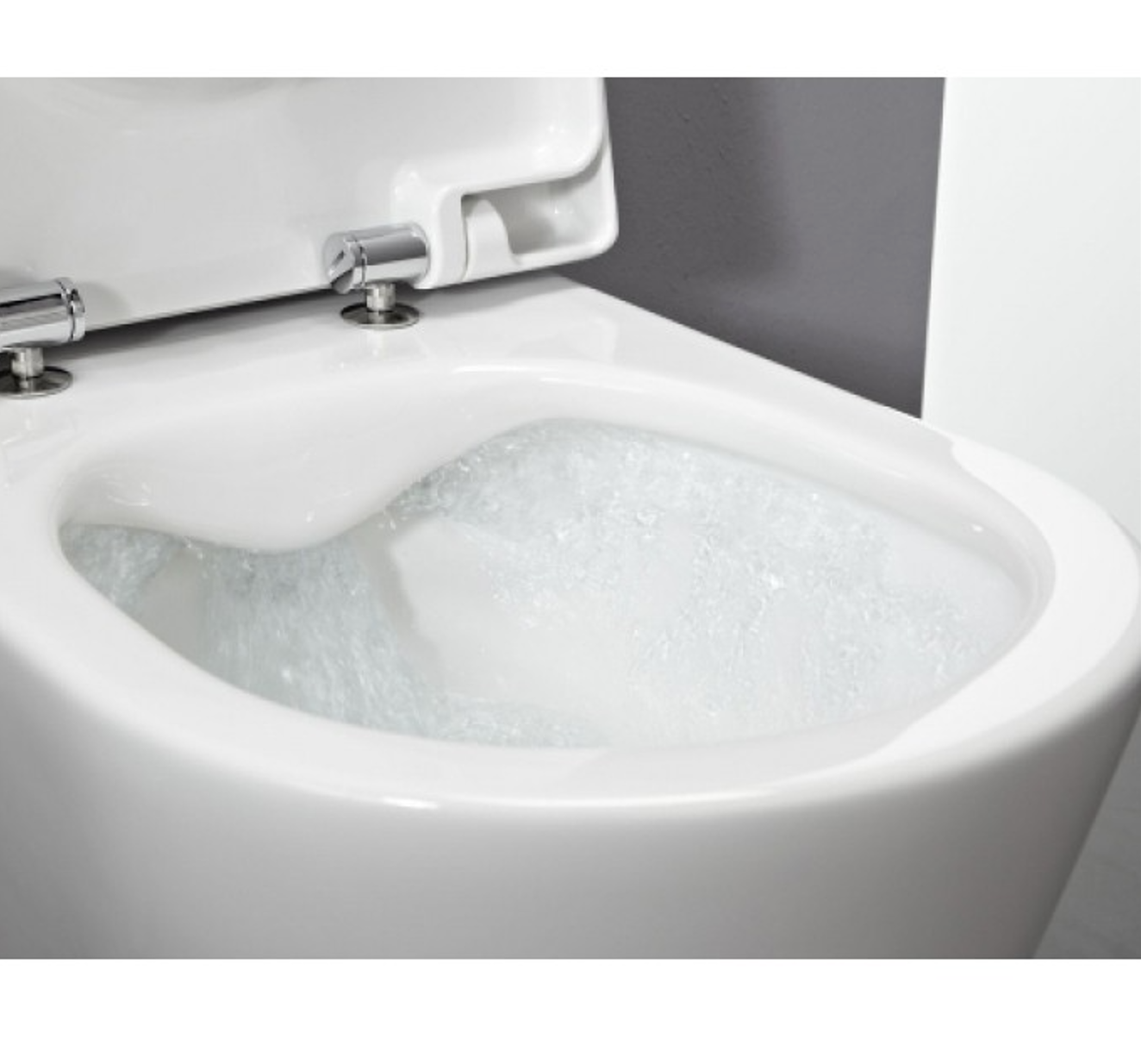 Конструкция без ободка обеспечивает равномерное распределение воды по всей чаше, что повышает эффективность смыва и снижает расход воды. Это не только экономит ресурсы, но и минимизирует необходимость частой очистки.