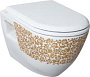 Унитаз подвесной Creavit TP325 с функцией биде, золото, цветы