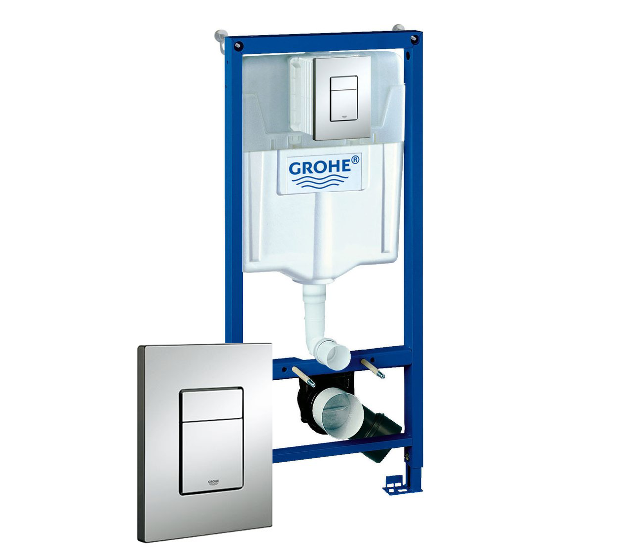 Инсталляция Grohe Rapid SL 38772001 с кнопкой смыва + унитаз подвесной WeltWasser Gudzon 485 WT — оборудование, чья система инсталляции с легкостью «прячется» за перегородками и панелями. Его преимущества: