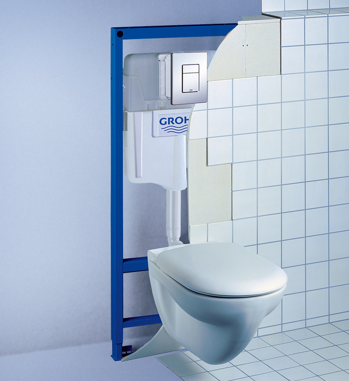 Инсталляция Grohe Rapid SL 38772001 с кнопкой + унитаз подвесной WeltWasser Heimbach 043 GL-WT — оборудование, чья система инсталляции с легкостью «прячется» за перегородками и панелями. Его преимущества: