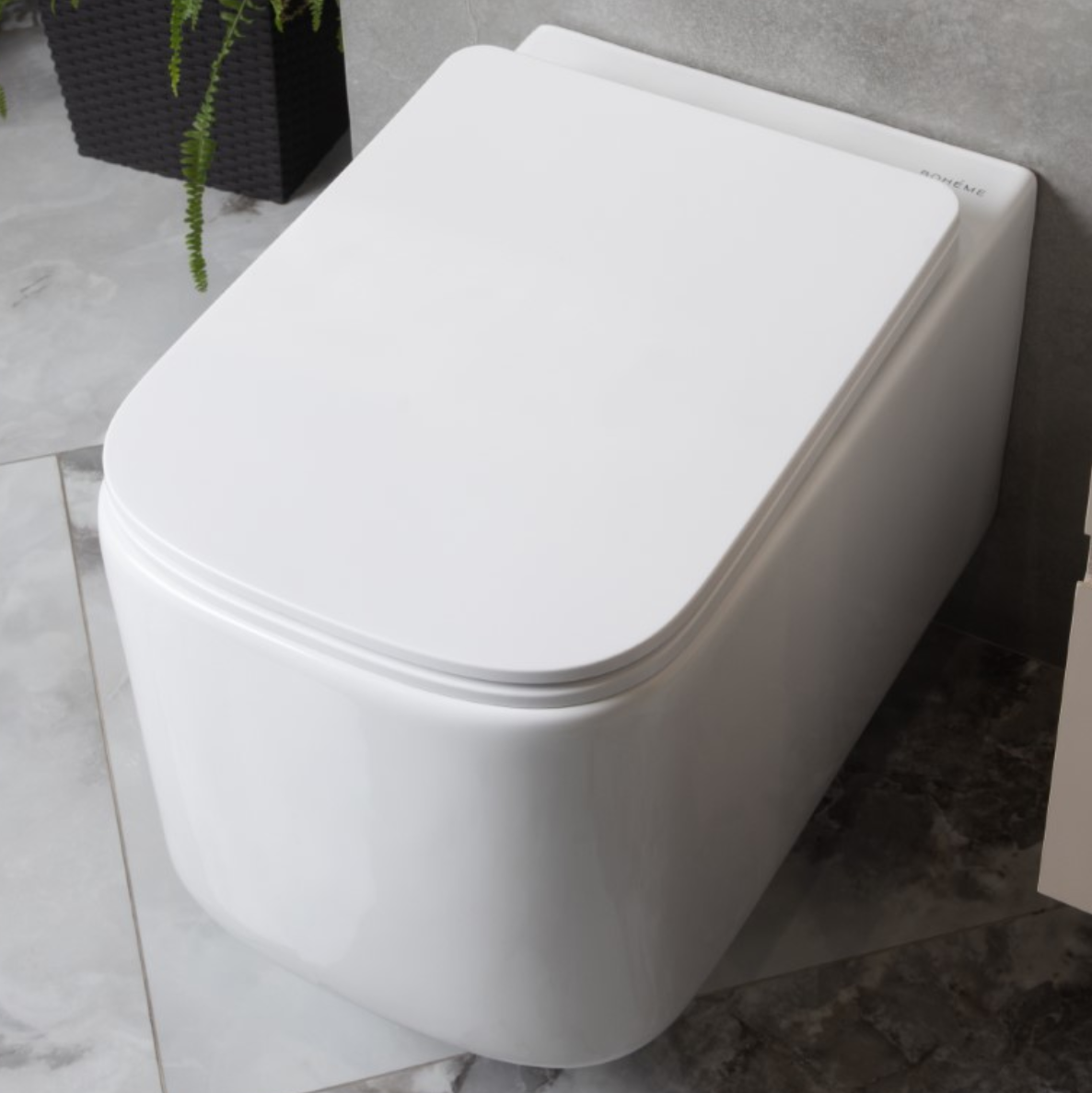 Начнём с самого важного: подвесной унитаз Boheme Mane выполнен из высококачественного фарфора, что гарантирует долговечность и лёгкость в уходе. Его безободковая конструкция — это не просто тренд, а реальная польза: вода равномерно распределяется по всей поверхности, эффективно смывая загрязнения, а значит, в ванной будет чисто и гигиенично. Форма унитаза — прямоугольная, глянцевая, белоснежная — идеально впишется в любой современный интерьер, будь то минимализм или лаконичный скандинавский стиль.